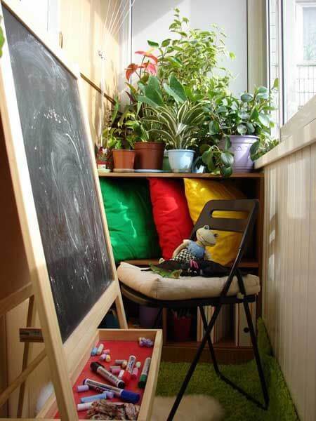 Даже если балкон совсем маленький, там всегда можно устроить небольшое место для детских игр.