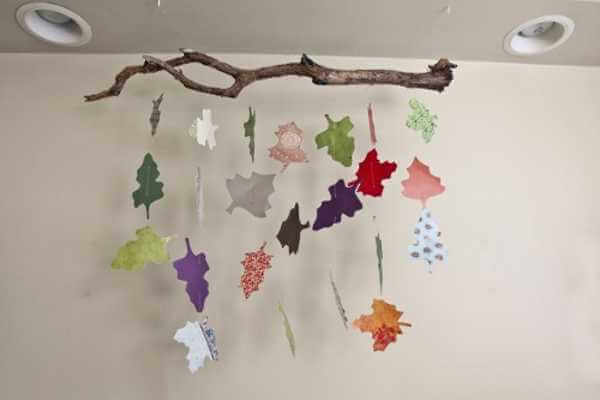 Такую корягу тоже можно подобрать во время прогулки, а потом покрасить и повесить на нее осенние листья или аппликации листьев. Смотрится отлично, и школьный класс будет явно выглядеть веселее.