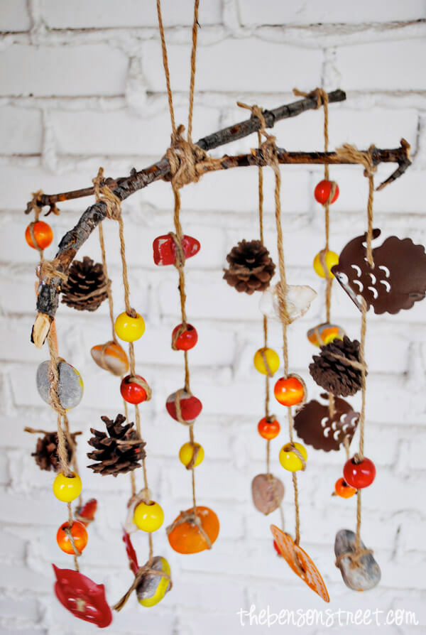 А собранные шишки, покрашенные в осенние цвета, и подвешенные на разноцветных ленточках превратятся в оригинальную гирлянду.