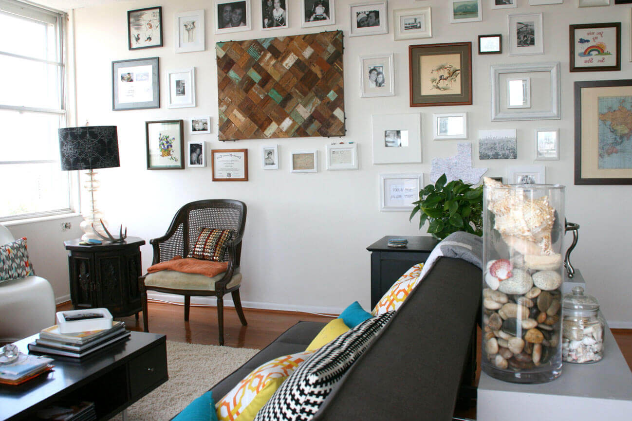 Можно просто выбрать несколько рамок и красиво их расположить на стене: